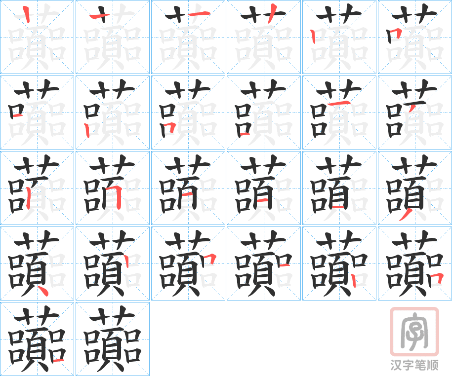 简体部首:艹部 部外笔画:21画 总笔画:24画 造字法: 可拆字为“艹 頁”