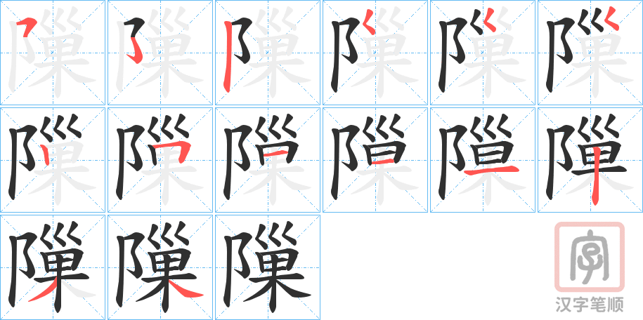 部首:阝部 部外笔画: 11画 总笔画:13画 康熙字典:隟(19画)