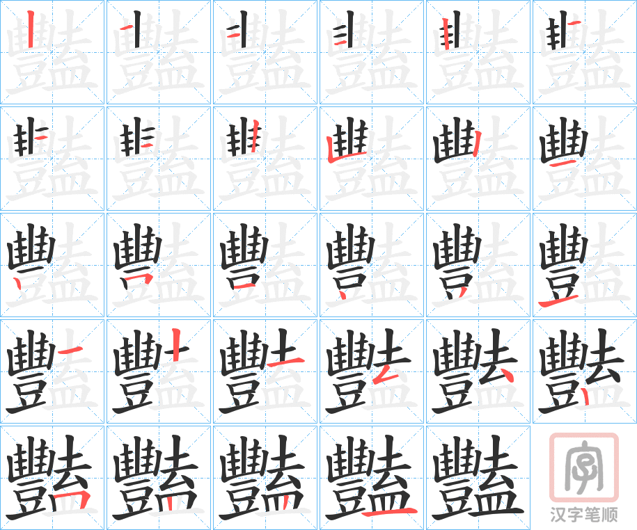 豔字的笔顺分步演示(一笔一画写汉字)