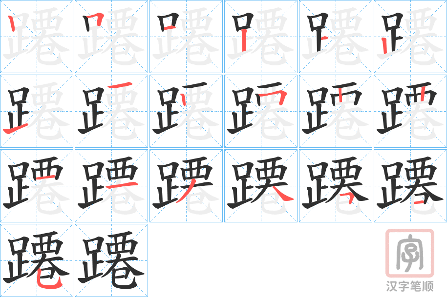 蹮字的笔顺分步演示(一笔一画写汉字)