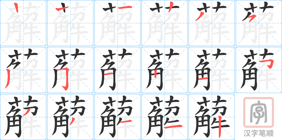 部首:艹部 部外笔画: 13画 总笔画:16画 康熙字典:薢(19画)