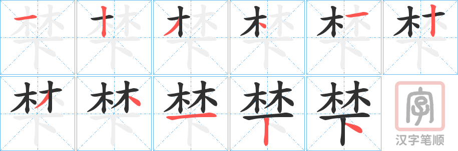 部首:木部 部外笔画: 7画 总笔画:11画 康熙字典:梺(0画)
