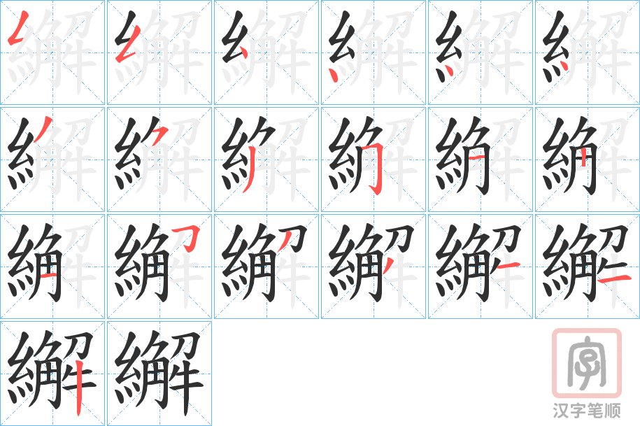 简体部首:糹部 部外笔画:13画 总笔画:19画 造字法: 可拆字为“糹 解”