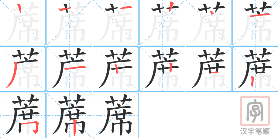 简体部首:艹部 部外笔画:10画 总笔画:13画 造字法: 可拆字为“艹 席”