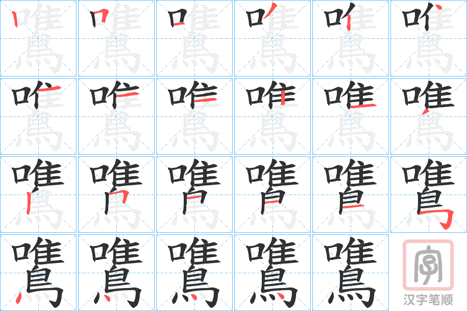 部首:鳥部 部外笔画: 11画 总笔画:22画 康熙字典:鷕(22画)
