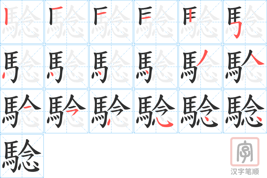 騐字的笔顺分步演示(一笔一画写汉字)
