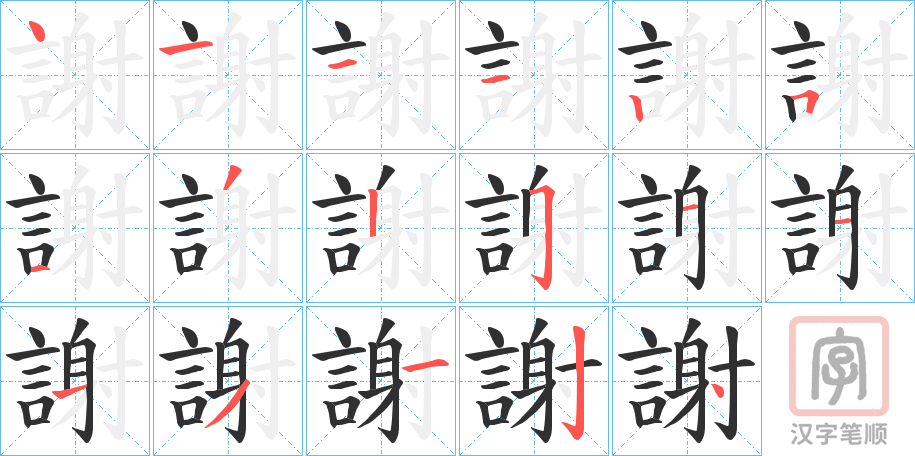 謝字的笔顺分步演示(一笔一画写汉字)