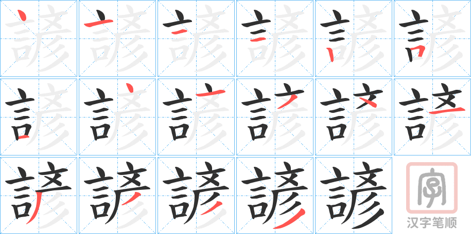 諺字的笔顺分步演示(一笔一画写汉字)