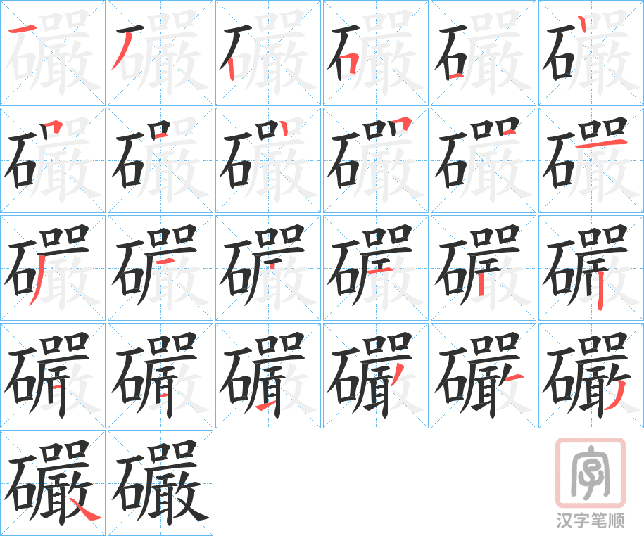 部首:石部 部外笔画: 19画 总笔画:24画 康熙字典:礹(25画)