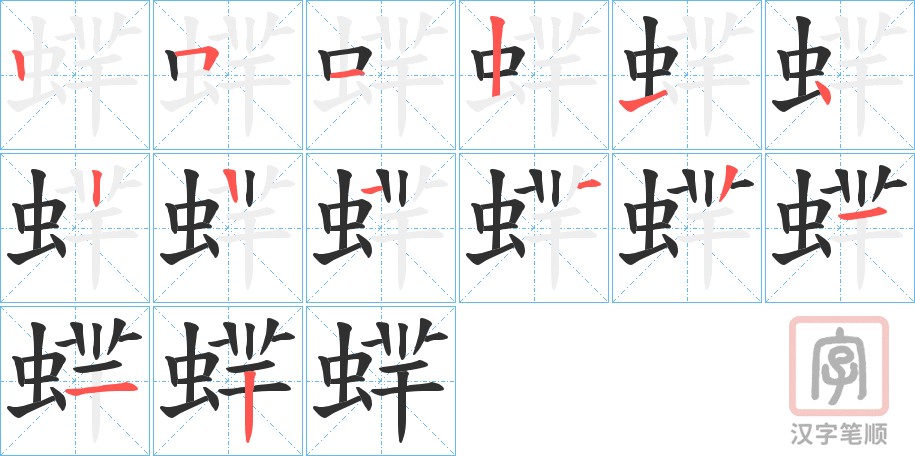 蝆字的笔顺分步演示(一笔一画写汉字)