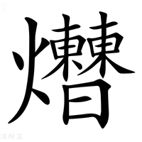 简体部首:火部 部外笔画:11画 总笔画:15画 造字法: 可拆字为“火 曹”
