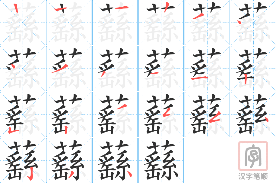 蘨字的笔顺分步演示(一笔一画写汉字)