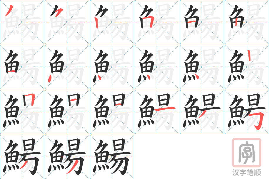 鰑字的笔顺分步演示(一笔一画写汉字)