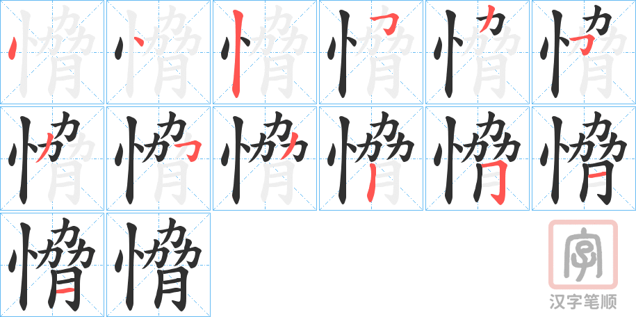 愶字的笔顺分步演示(一笔一画写汉字)
